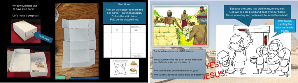 God warned Moses that Pharaoh’s heart was hard and that it would take a mighty hand to deliver the Israelites. He also said He would reveal His Sovereignty. God designed the plagues to refute Egypts gods and show that indeed He was and is the One Ruler over all. This presentation also includes the story of bricks without straw which is the result of Moses’ first encounter with this Pharaoh. There are several craft options. If you have live specimens to show the kids, that would be fun.