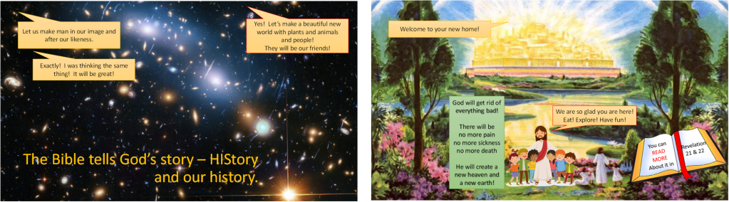 God’s Word is a timeless book. There are so many awesome stories! They all are part of God’s story, His story is our history — HIStory. In these presentations we look at an overview of the Bible from several perspectives. We’ll also learn the books of the Bible.