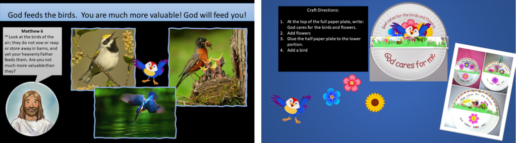 In this presentation we learn about how God created the birds to get their food. He cares for each of His creation -including us! He made beautiful flowers and will make us beautiful too.