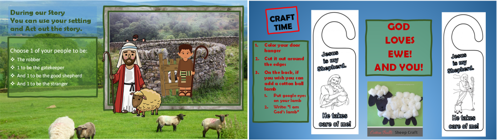 Each lesson provides slides for the teacher of the lesson. Included in each set of slides are music videos, the Bible story verses from the Bible accompanied by pictures, activities to go along with the story, and many have a video of the story. I hope you find these helpful, as I have.