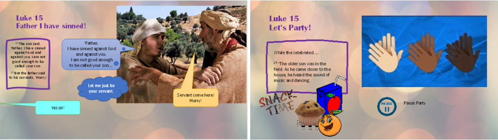 This presentation combines the three Lost and Found stories in Luke 15. The lost sheep, lost coin, and the prodigal son teach us how much God loves us! Jesus came to seek and to save the lost. All heaven rejoices when even one sinner turns their heart towards God. He is so ready to forgive! During this presentation, the kids get to play hide and seek with objects, act out the story, and finish with a party, rejoicing that they too are found, saved, and very precious to God!
