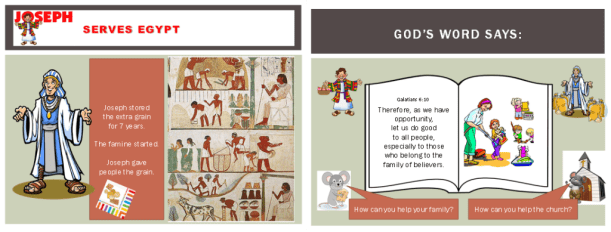 The following Power Point has slides for each of the parts for Part 1 of the skit, In Moab. I like to have the slides displayed in the back (not the front) of the church for the kids’ benefit. This first part is based on the first couple verses from the book of Ruth, but is more on the creative side.